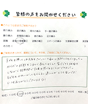 体の状態を細かく教えてもらい、家でできる体操をしながら短時間で効果を感じることができました。(20代 女性)
