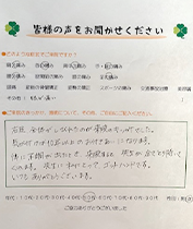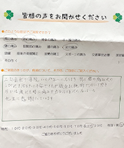 体の不調が出たとき、来院すると、先生が全て取り除いてくれます。先生に私にとってゴッドハンドです。(50代 女性)